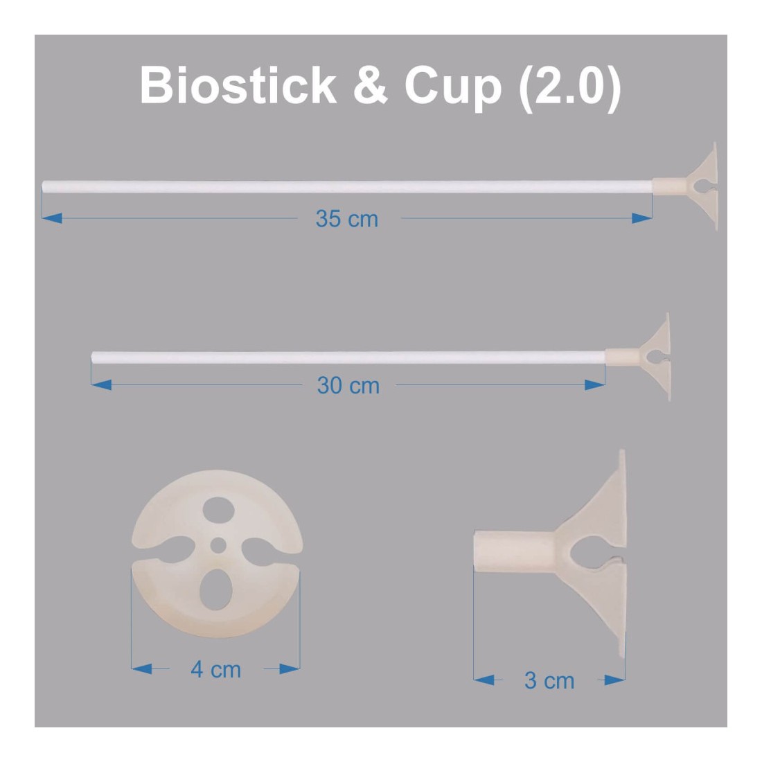 A146 - 100 Bastoncini Astine (30 cm) e valvola Biostick e Biocup (2.0) per Palloncini