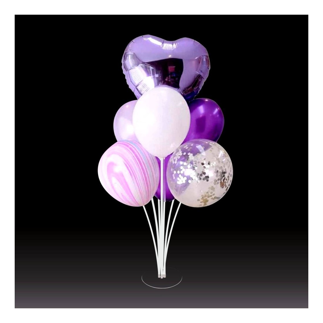 Non c'è bisogno di elio. Gonfia i palloncini usando semplice aria e posizionali facilmente sull'espositore.