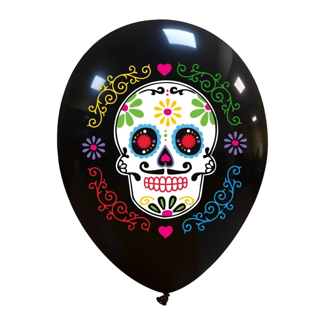 Palloncini neri da 12 pollici, la stampa presenta un teschio a 7 colori in perfetto stile "día de los muertos". Festeggia un halloween coloratissimo con questo prodotto.