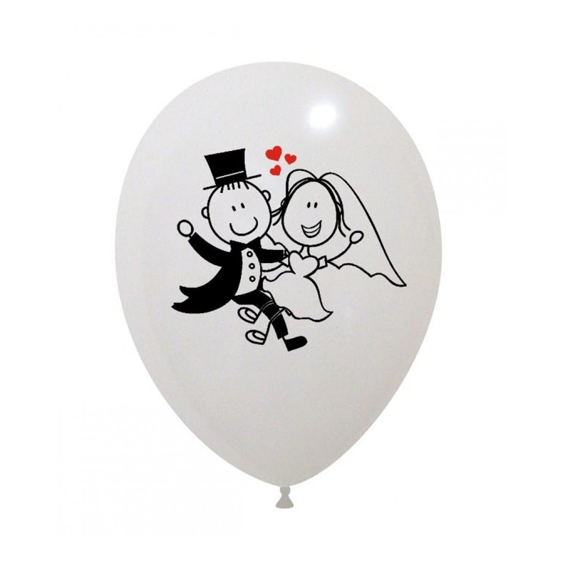100 palloncini bianchi raffiguranti due simpatici "Sposini", con diametro di 30 cm.