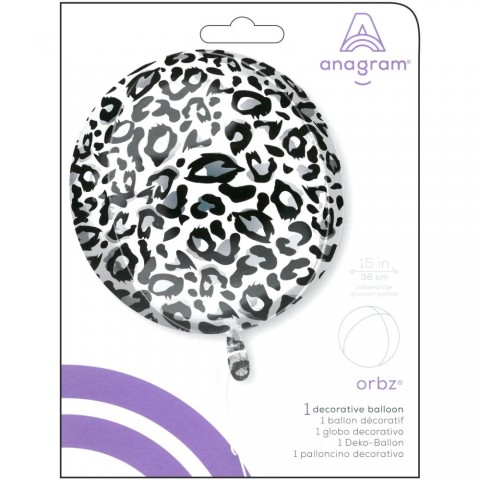 Palloncini Orbz da 16 pollici con macchie bianche e nere che ricordano la pelliccia di un leopardo delle nevi. Crea fantastiche decorazioni a tema animali con l'aiuto di questi meravigliosi palloncini Orbz.