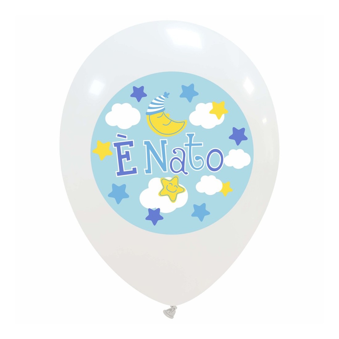 Palloncini bianchi in lattice, da 12 pollici, perfetti per festeggiare il nuovo arrivato in famiglia. La stampa, presente su 1 lato del prodotto, riporta la scritta E' nato.