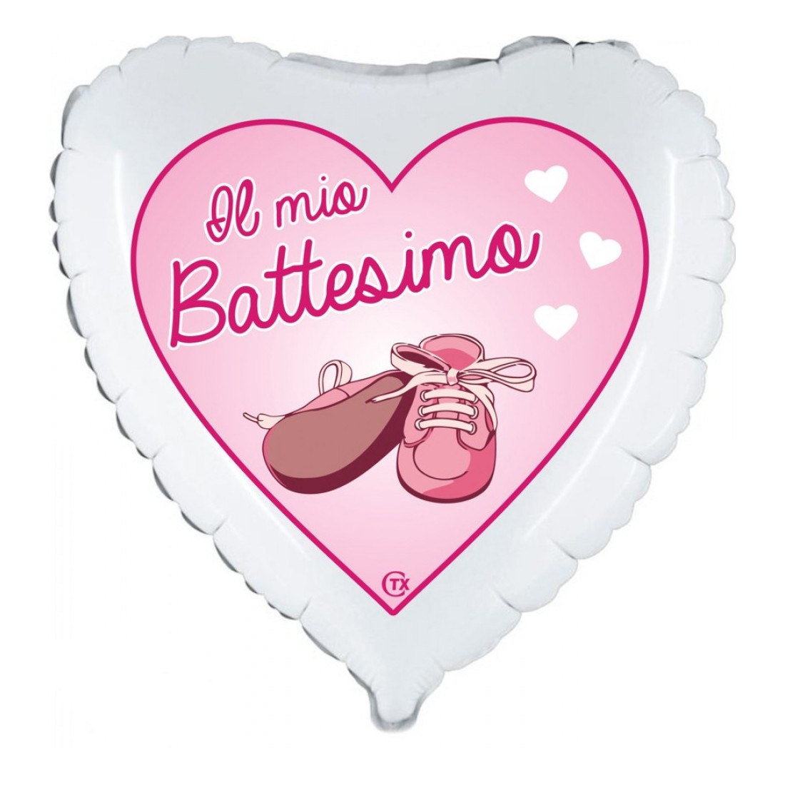 Palloncino per BATTESIMO BIMBA in mylar a forma di cuore