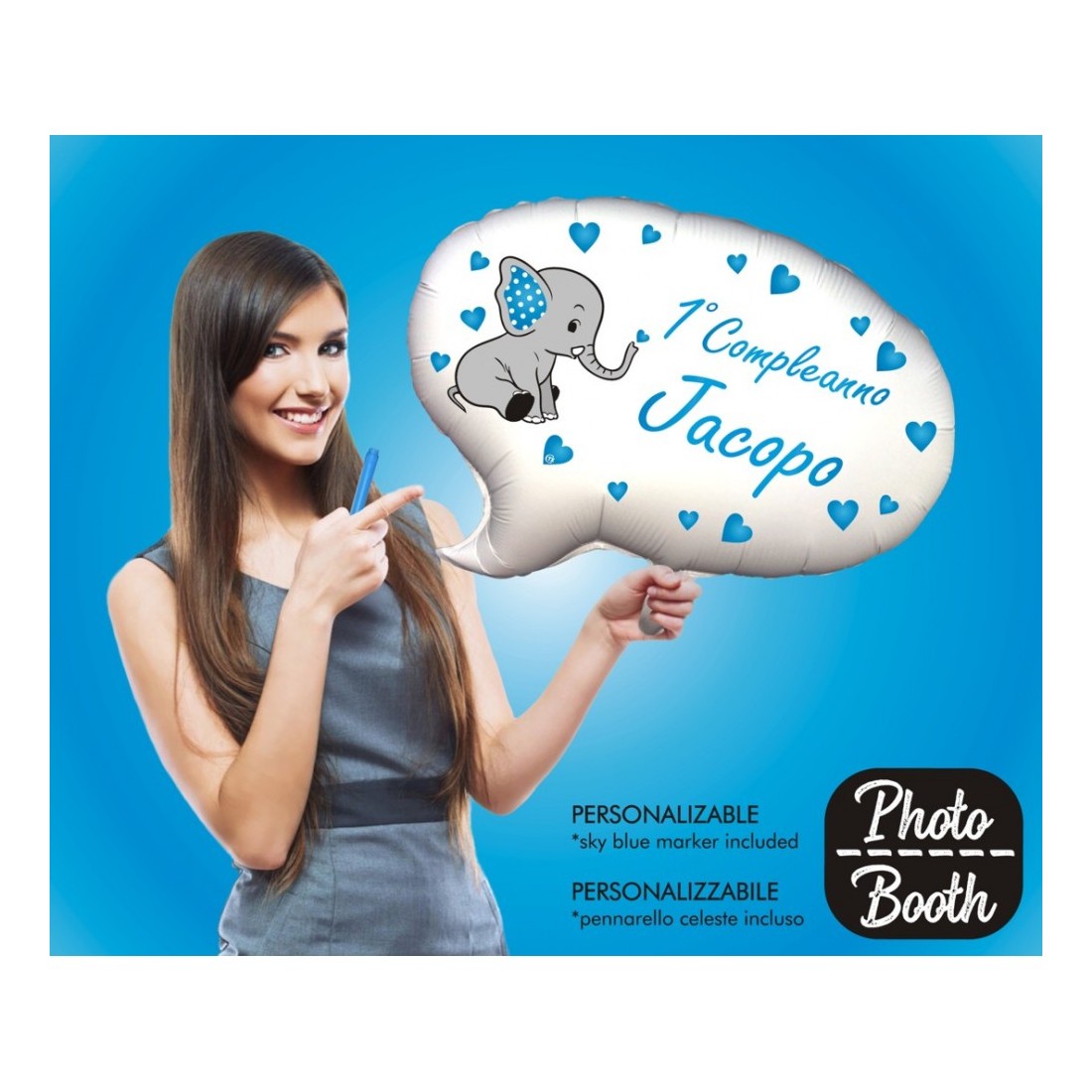 Photo Booth - palloncino mylar Elefantino bimbo - personalizzabile