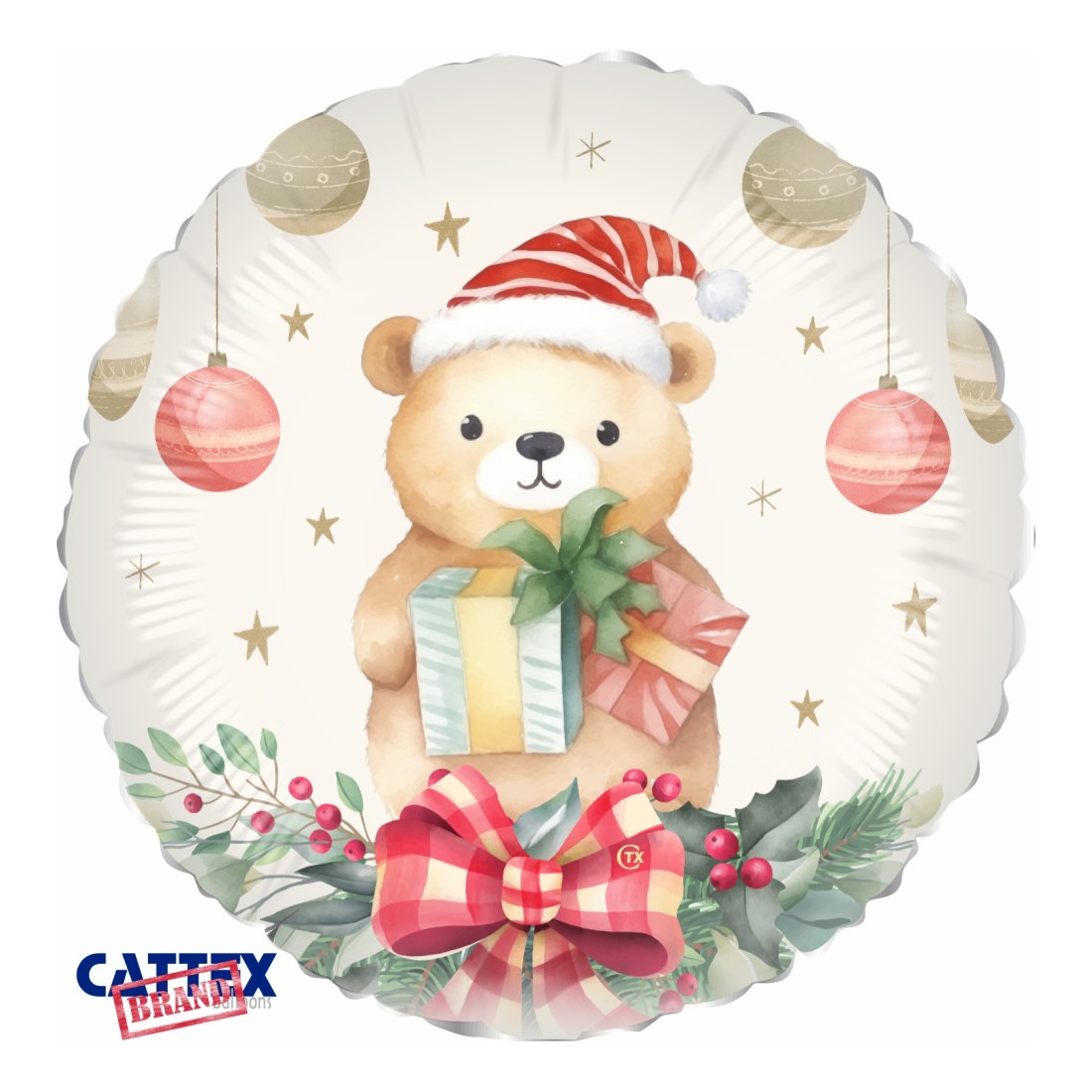 Palloncini mylar da 18 pollici con stampato un simpatico orsetto pronto a festeggiare il Natale.