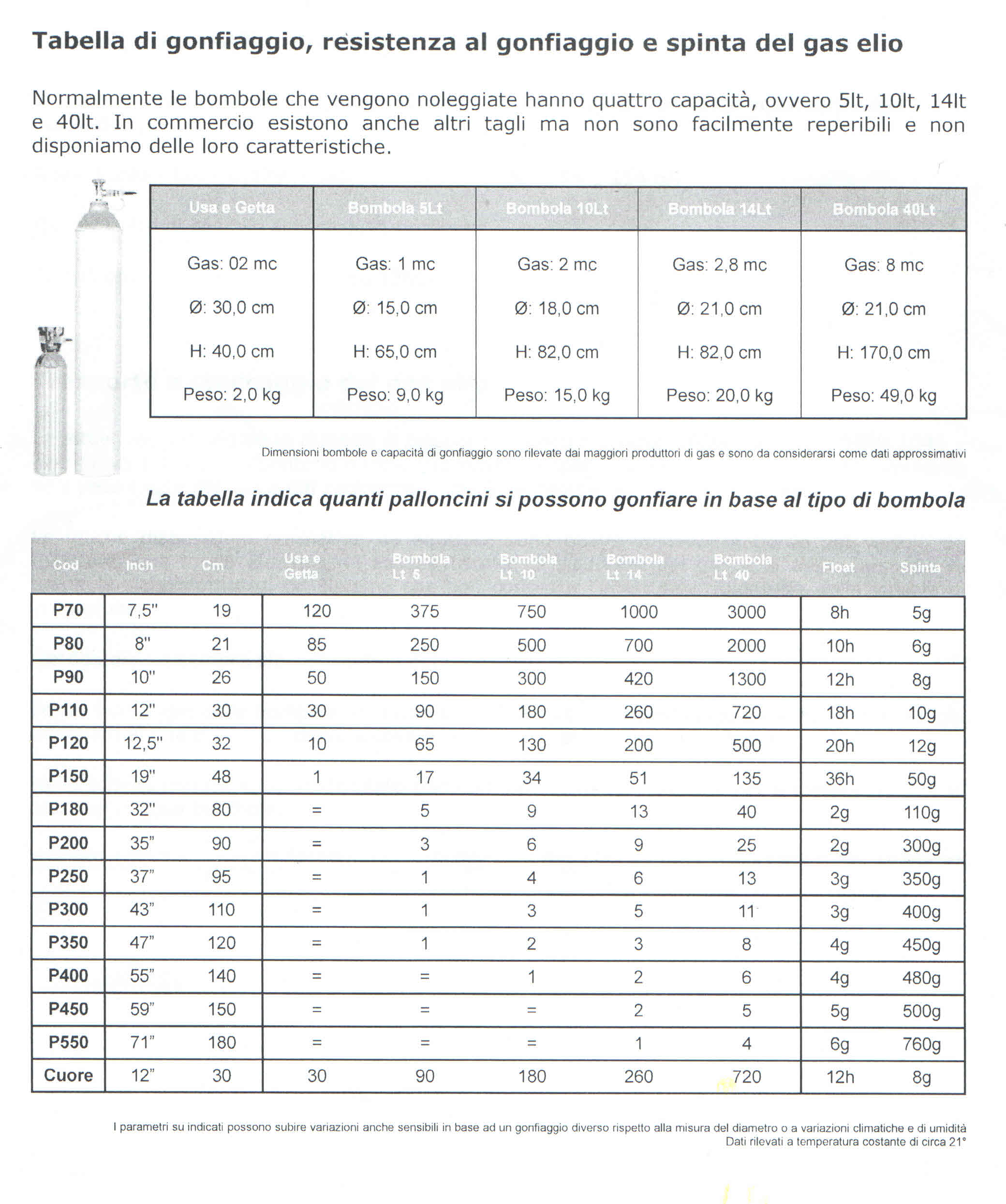 Gonfiato ad elio in ambienti chiusi  (18° C) ha una durata di circa 15 ore.